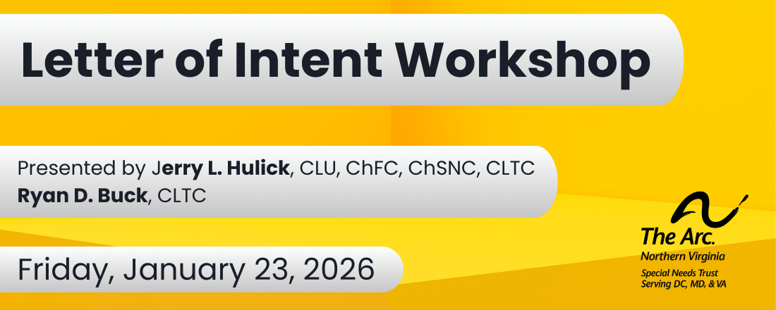 A letter of intent (LOI) is a way of communicating your desires and concerns, as well as caregiving instructions to future caregivers, guardians, trustees and advocates of dependents with disabilities. This workshop will discuss how a LOI can be used as part of the special needs planning process. Although not a legally binding document, it will allow future caregivers to more quickly learn how to deliver the very best care. We will also discuss the importance of family communication and successor caregiving.